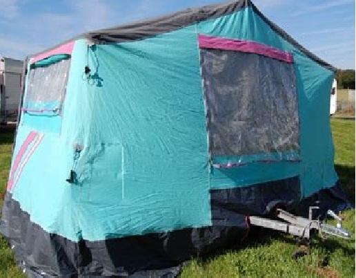 Don Caravatente Raclet modèle Jade Etat correct avec une petite remise en état à prévoir. Vends caravane pliante en toile avec auvent complet, 2 chambres, grand coffre de rangement, cuisine 2 feux au gaz,